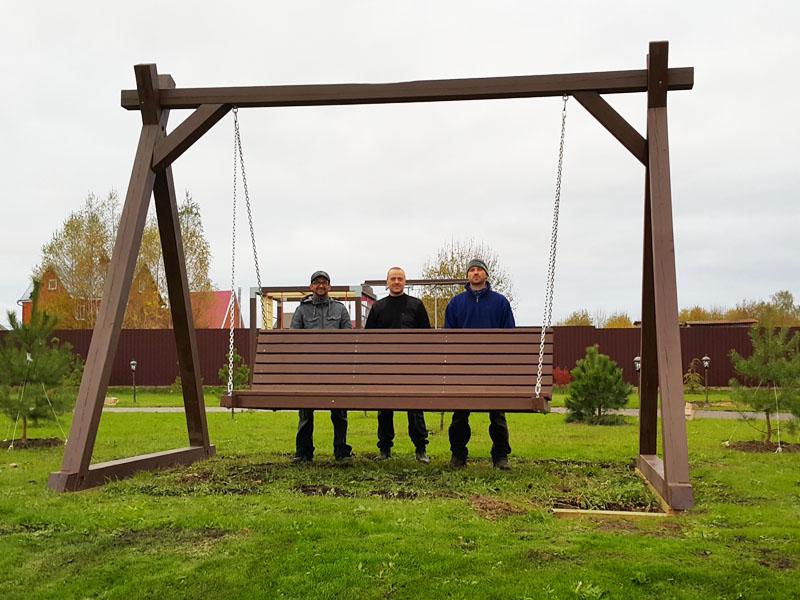 Наши уличные качели изготовлены своими руками, основа — клееный брус и металлические составляющие. Простота исполнения конструкции, ее узлов и соединений обеспечивает высокую надежность и долговечность. В зависимости от того, для каких целей будут использоваться качели, мы предложим навесное оборудование, которое может быть использовано как детьми, так и взрослыми.